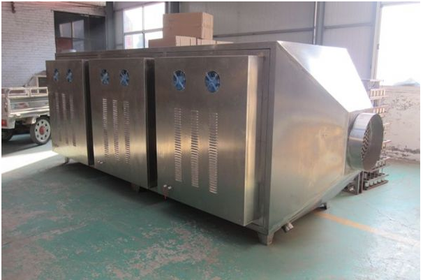 UV光解净化设备是利用高能高臭氧UV紫外线光束分解空气中的氧分子产生游离氧,即活性氧,因游离氧所携正负电子不平衡所以需要与氧分子结合,进而生产臭氧。臭氧对紫外线光束照射分解后的有机物具有极强的氧化作用,对恶臭气体及其它刺激性异味有良好的削除效果。