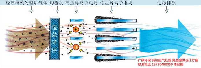 在外加电场的作用下,介质放电产生的大量携能电子轰击污染物分子,使其电离、解离和激发,然后便引发了一系列复杂的物理、化学反应,使复杂大分子污染物转变为简单小分子安全物质,或使有毒有害物质转变成无毒无害或低毒低害的物质,从而使污染物得以降解去除