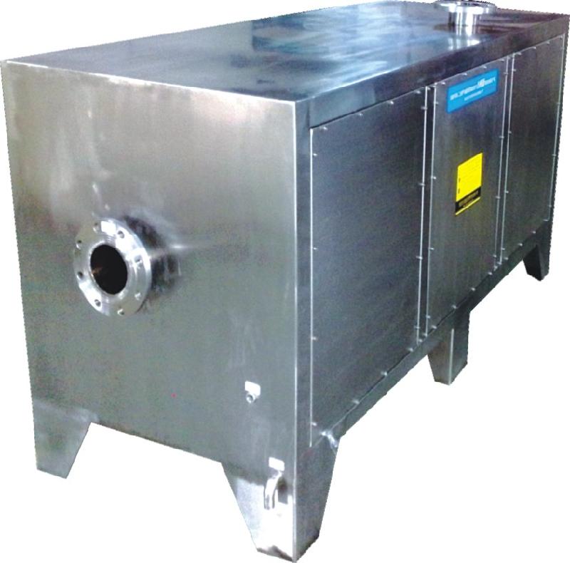 高效光解氧化处理模块利用高能高臭氧UV紫外线光束照射恶臭气体,裂解恶臭气体中氨、三甲胺、硫化氢、甲硫氢、甲硫醇、甲硫醚、二甲二硫、二硫化碳和苯乙烯,硫化物 H2S、VOC类,苯、甲苯、二甲苯的分子键,使呈游离状态的污染物分子与臭氧氧化结合成小分子无害或低害的化合物,如 CO2、H2O 等。
